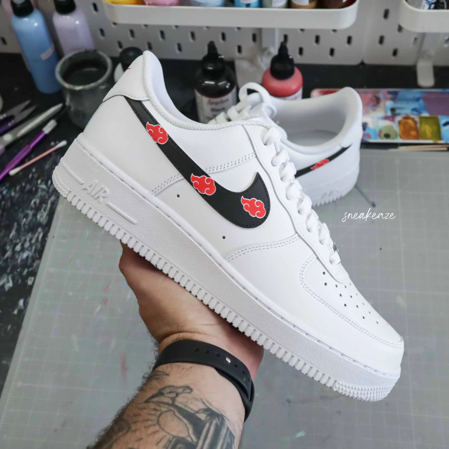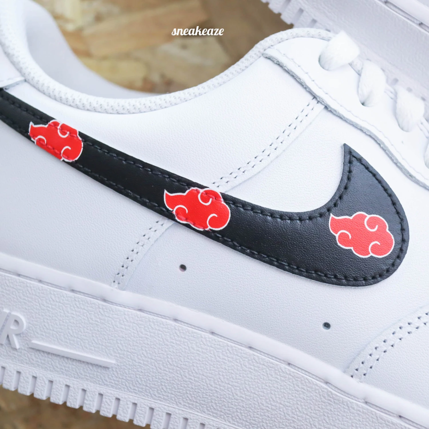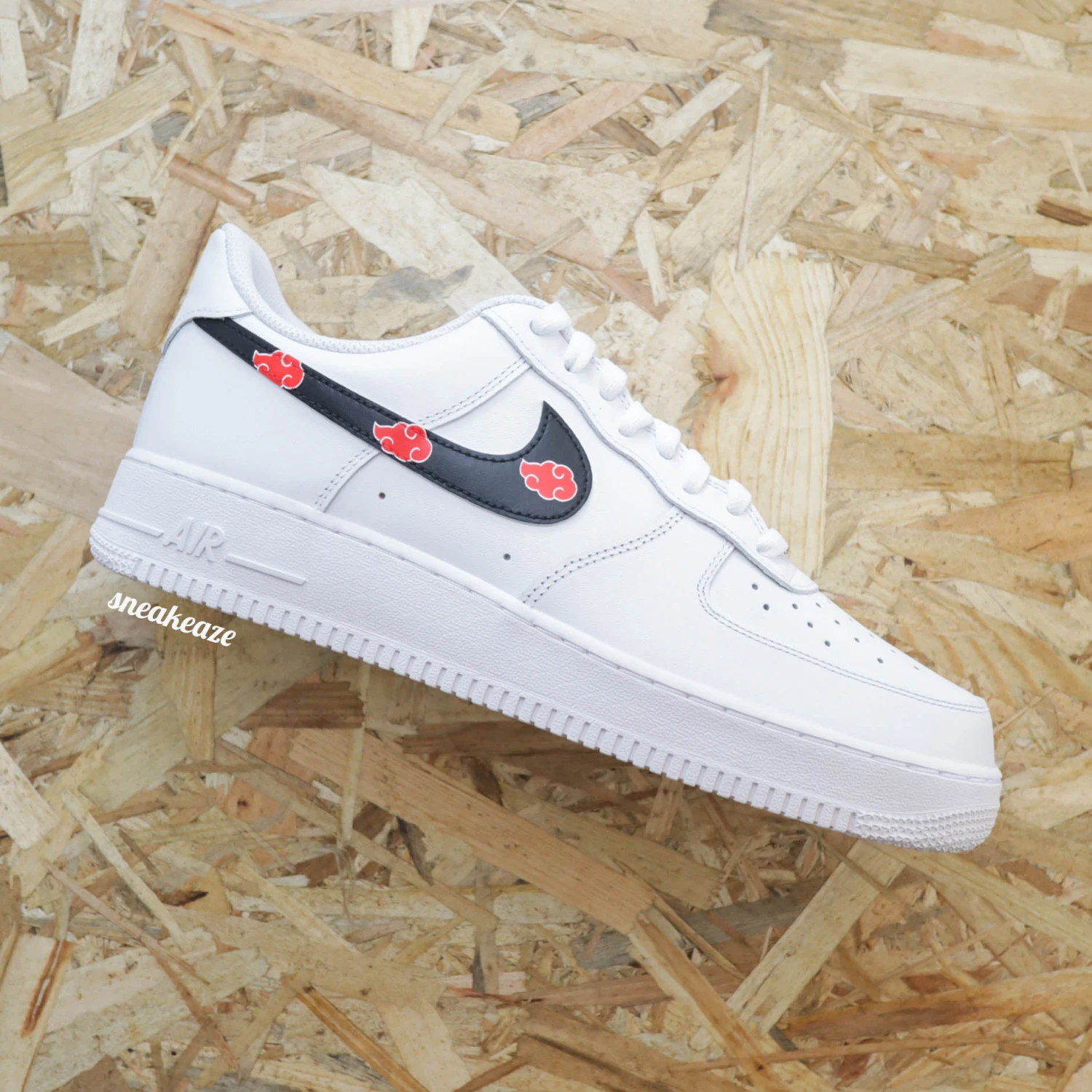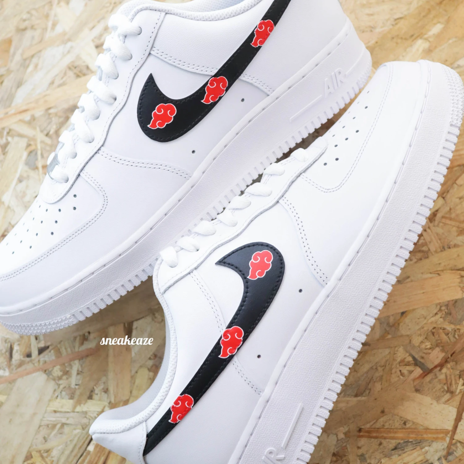 Baskets Nike Air force 1 custom motifs akatsuki sur les côtés extérieurs et intérieurs. Je souhaite ajouter un prénom à mon custom
