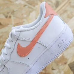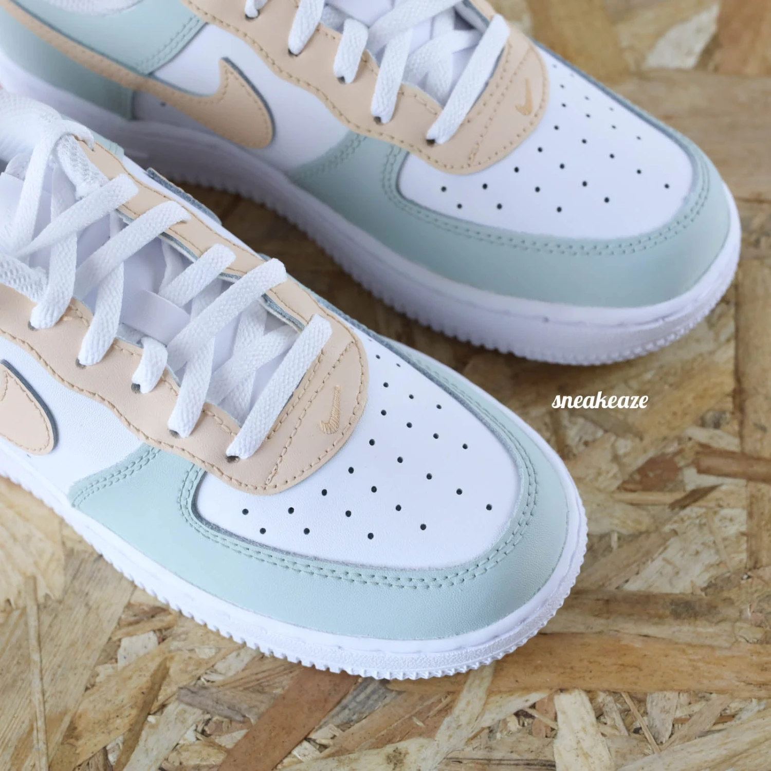 Nike Air Force 1 custom pour enfants tons amande et abricot.
