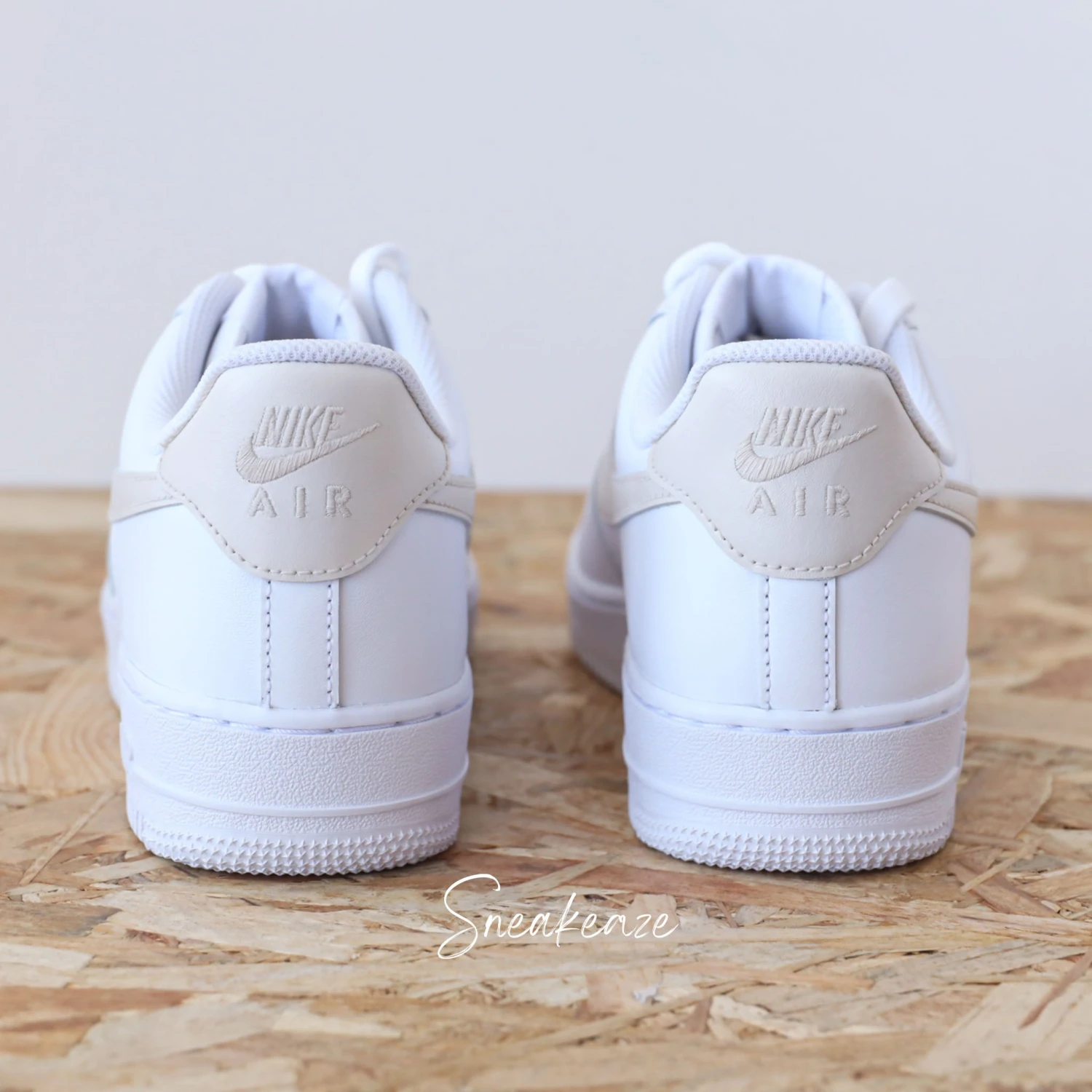 Baskets Nike Air force 1 custom – swoosh & arrière jaune pastel. Custom sur les côtés extérieurs et intérieurs.