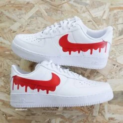 Baskets Nike Air Force 1 custom couleur vert menthe et beige pastel et toile assortie.