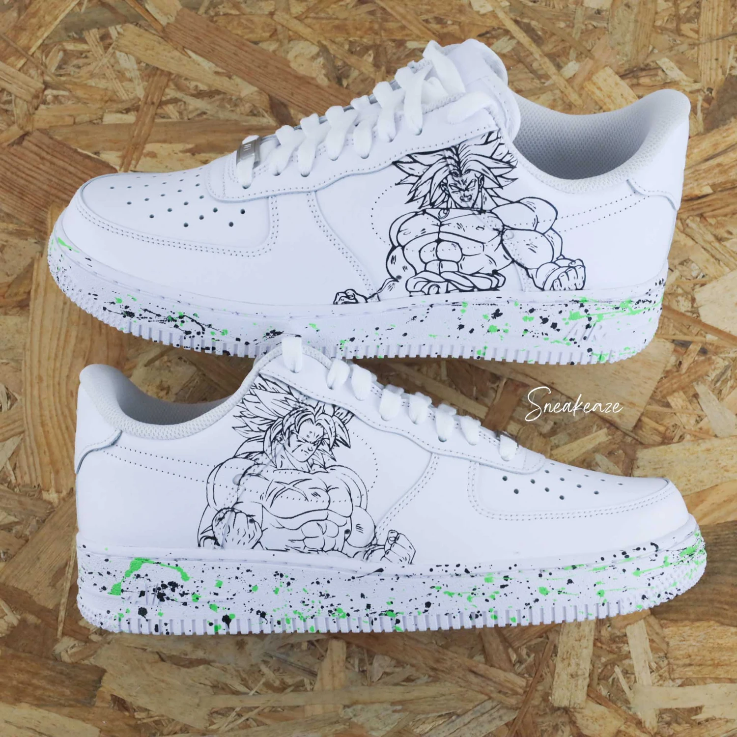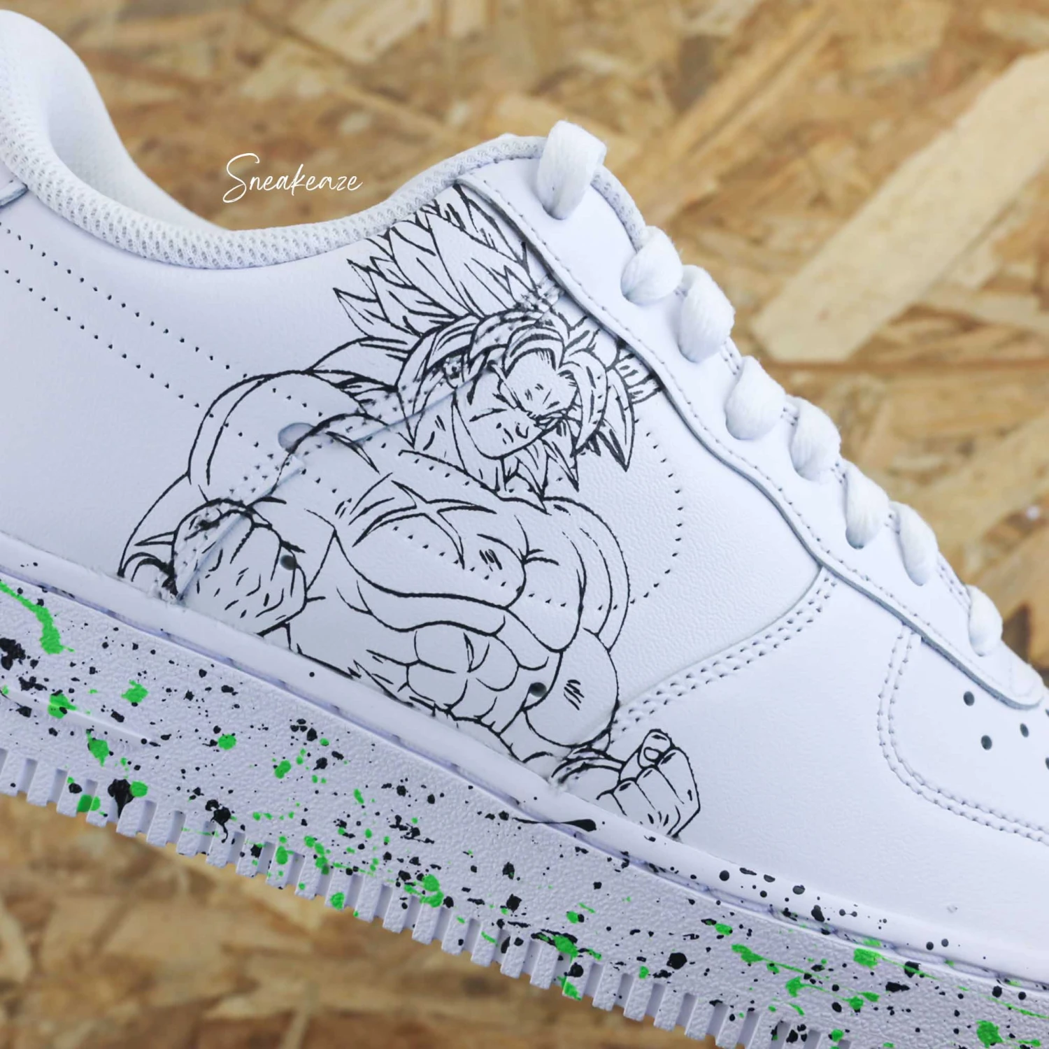 Baskets Nike Air force 1 custom motifs Dragon Ball Z Goku sur côtés extérieurs. Je souhaite ajouter un prénom à mon custom