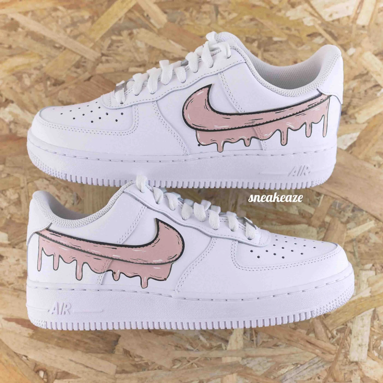 Baskets Nike Air force 1 custom modèle cartoon drip. Motifs sur côtés extérieurs. Je souhaite ajouter un prénom à mon custom