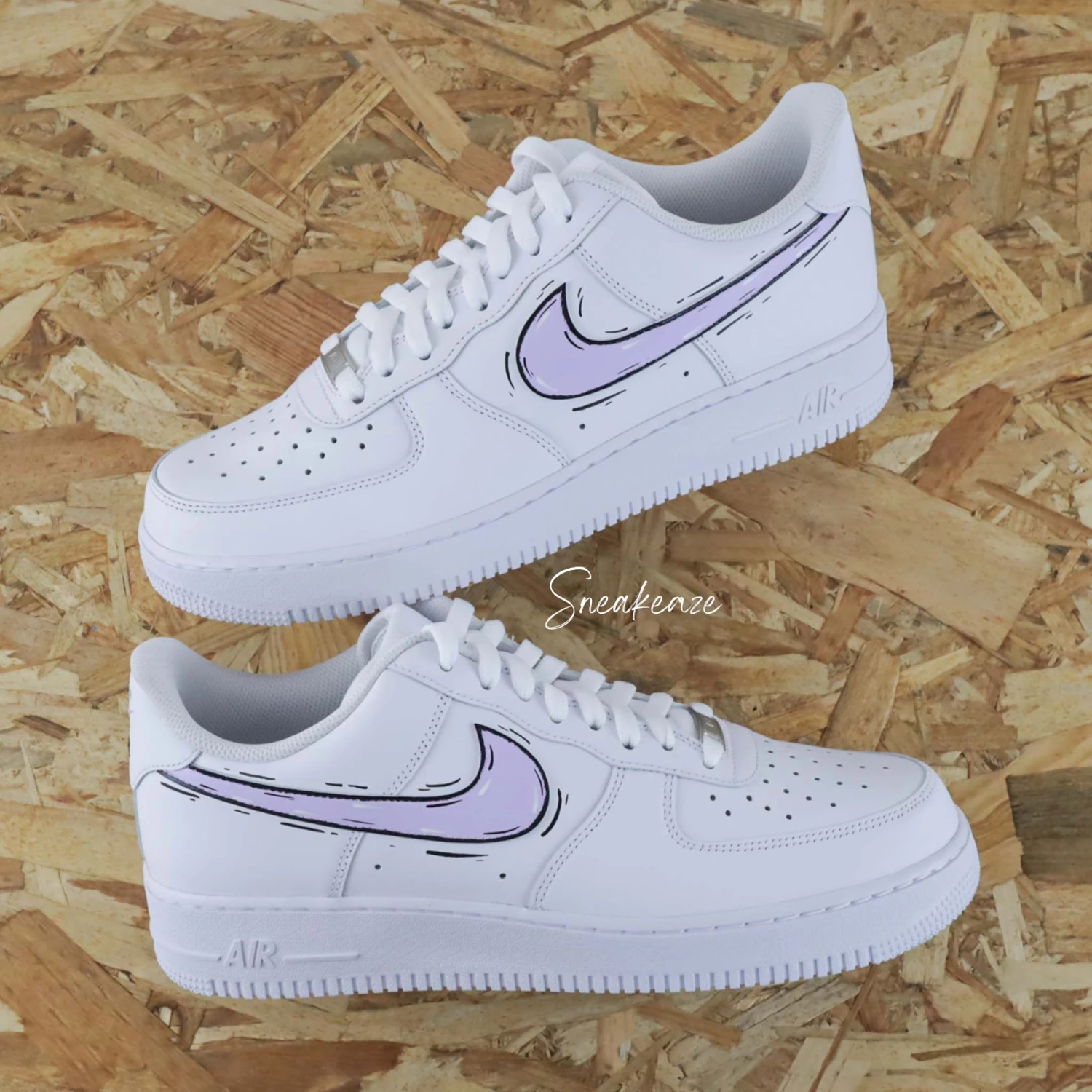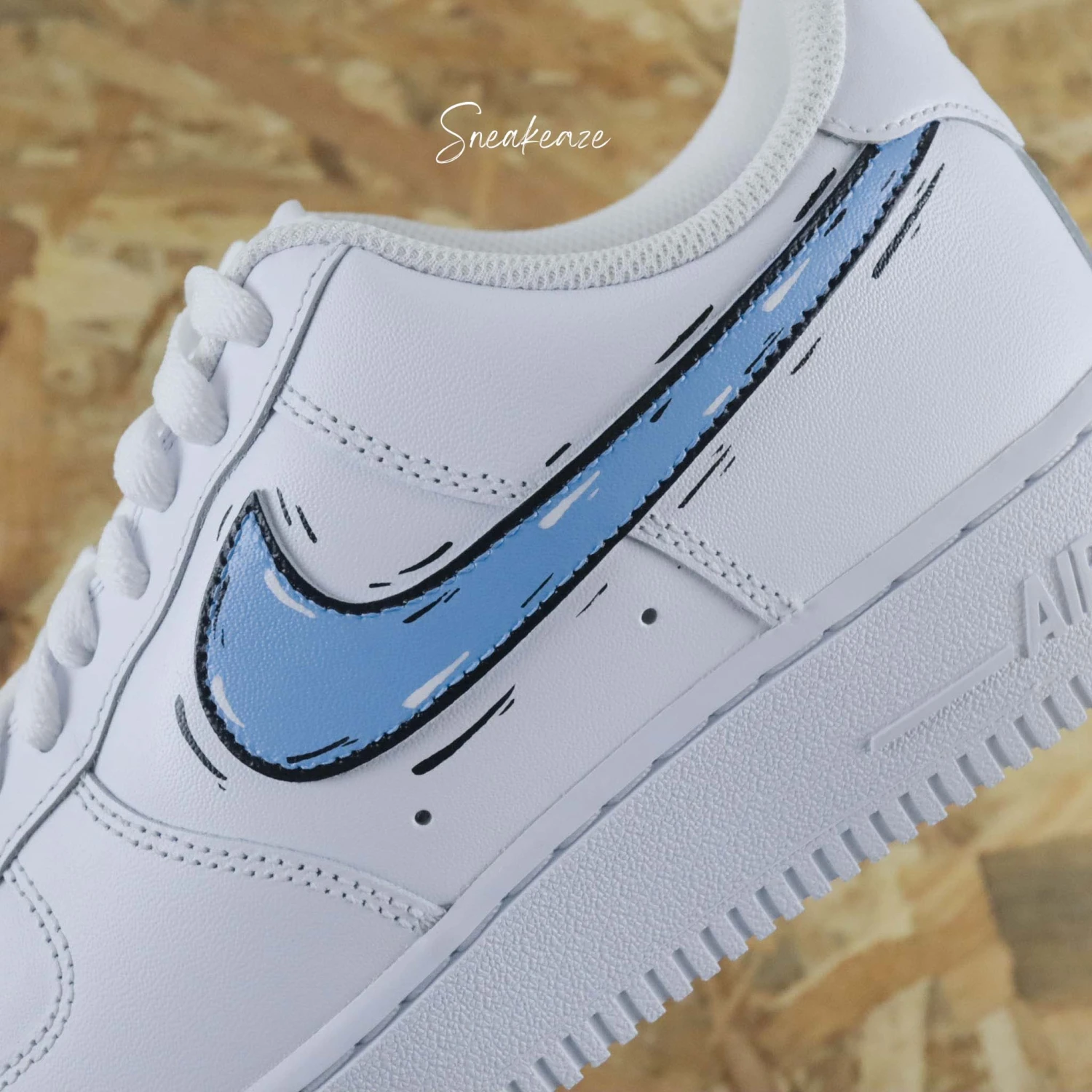 Baskets Nike Air Force 1 custom Cartoon swoosh couleur unc blue. Je souhaite ajouter un prénom à mon custom