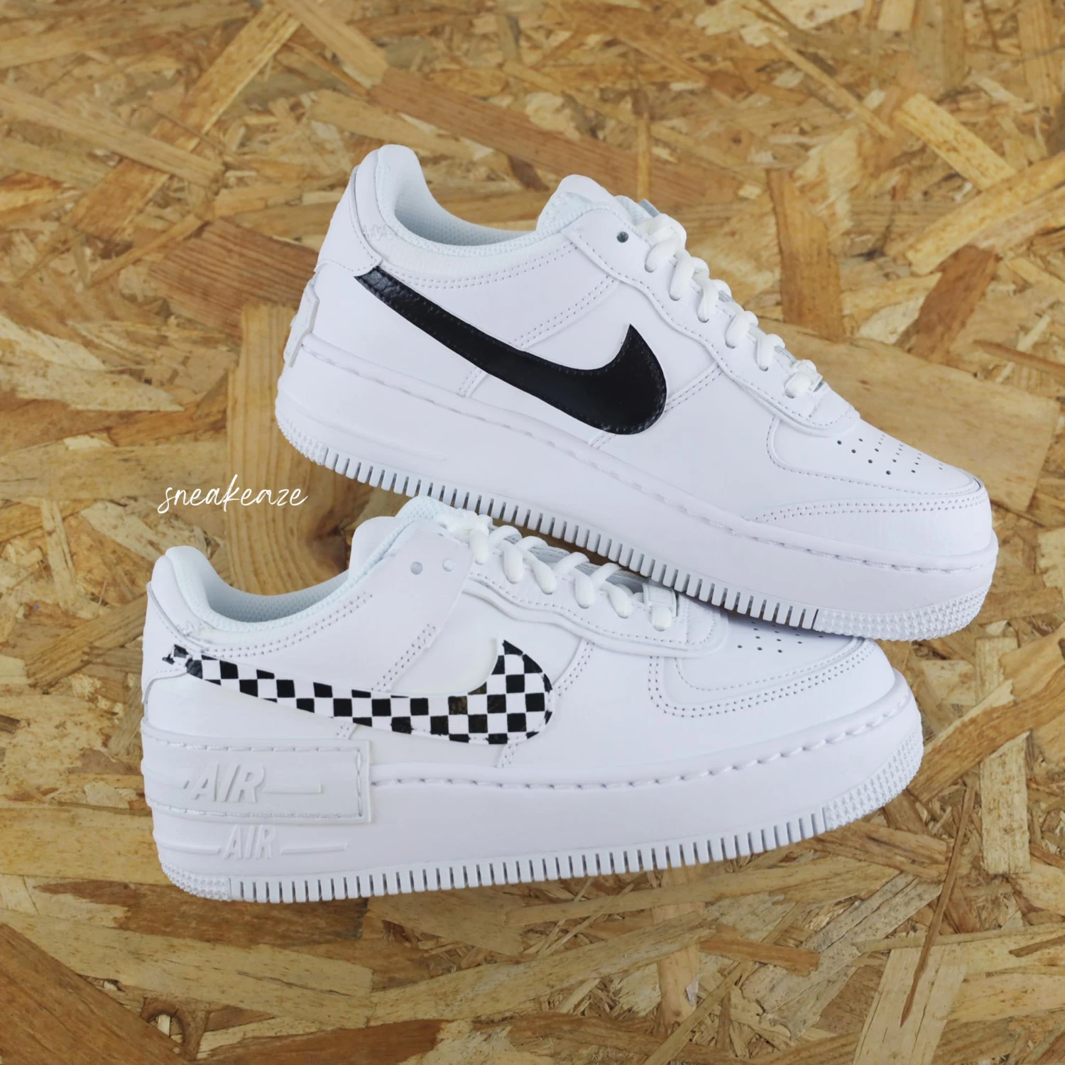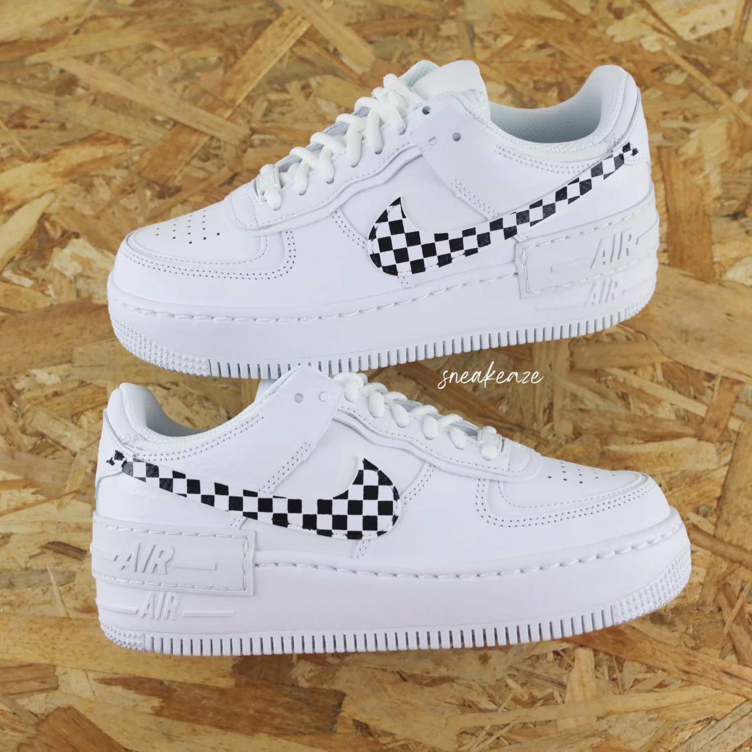 Baskets Nike Air Force 1 Shadow custom Signes Nike extérieurs motifs damier et signes intérieurs peints en noir.