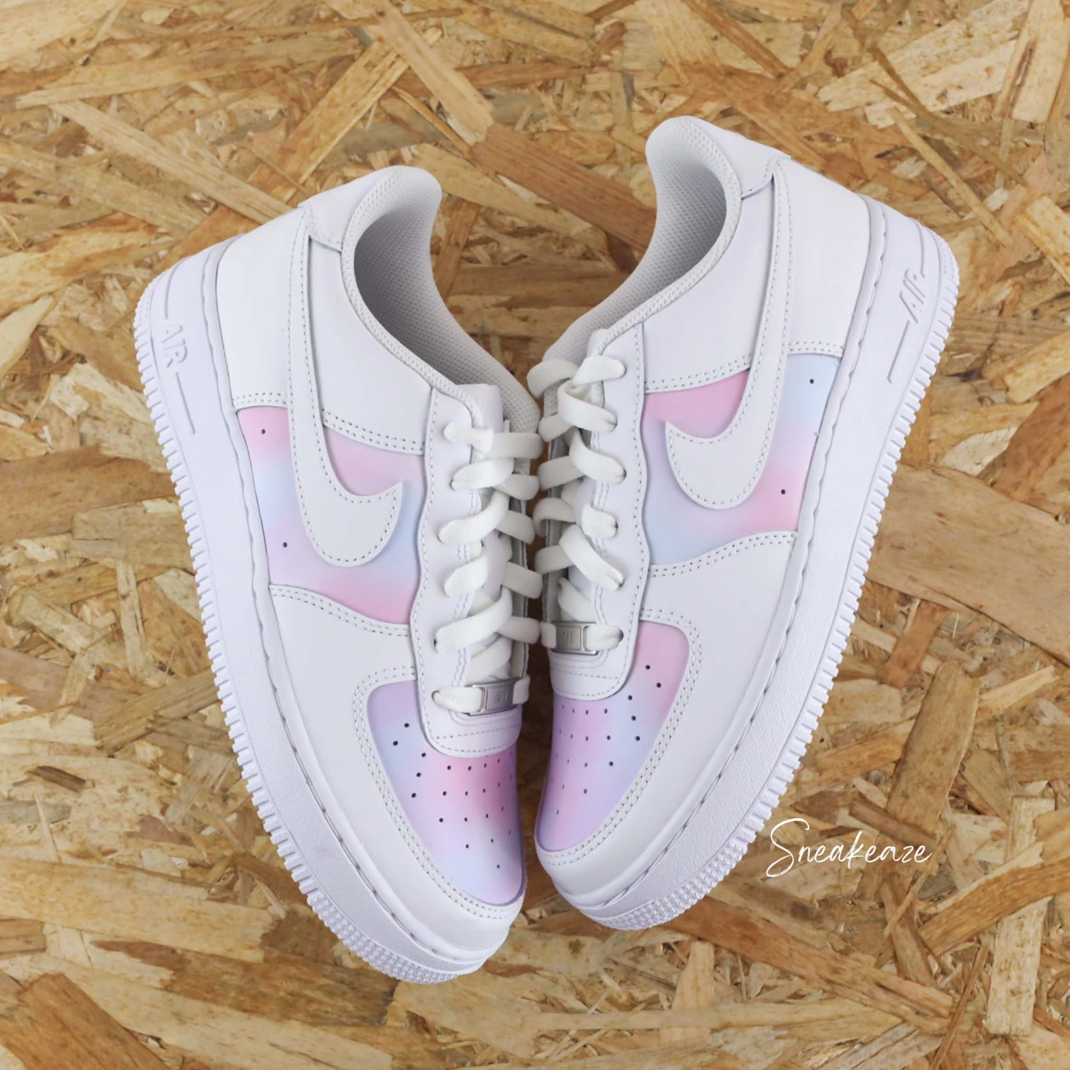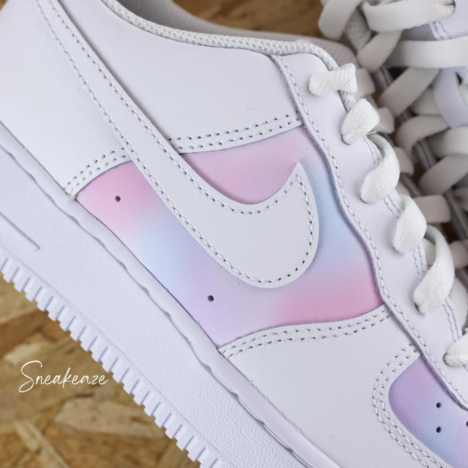 Baskets Nike Air Force 1 custom modèle effet dégradé pastel sur le devant et les côtés.