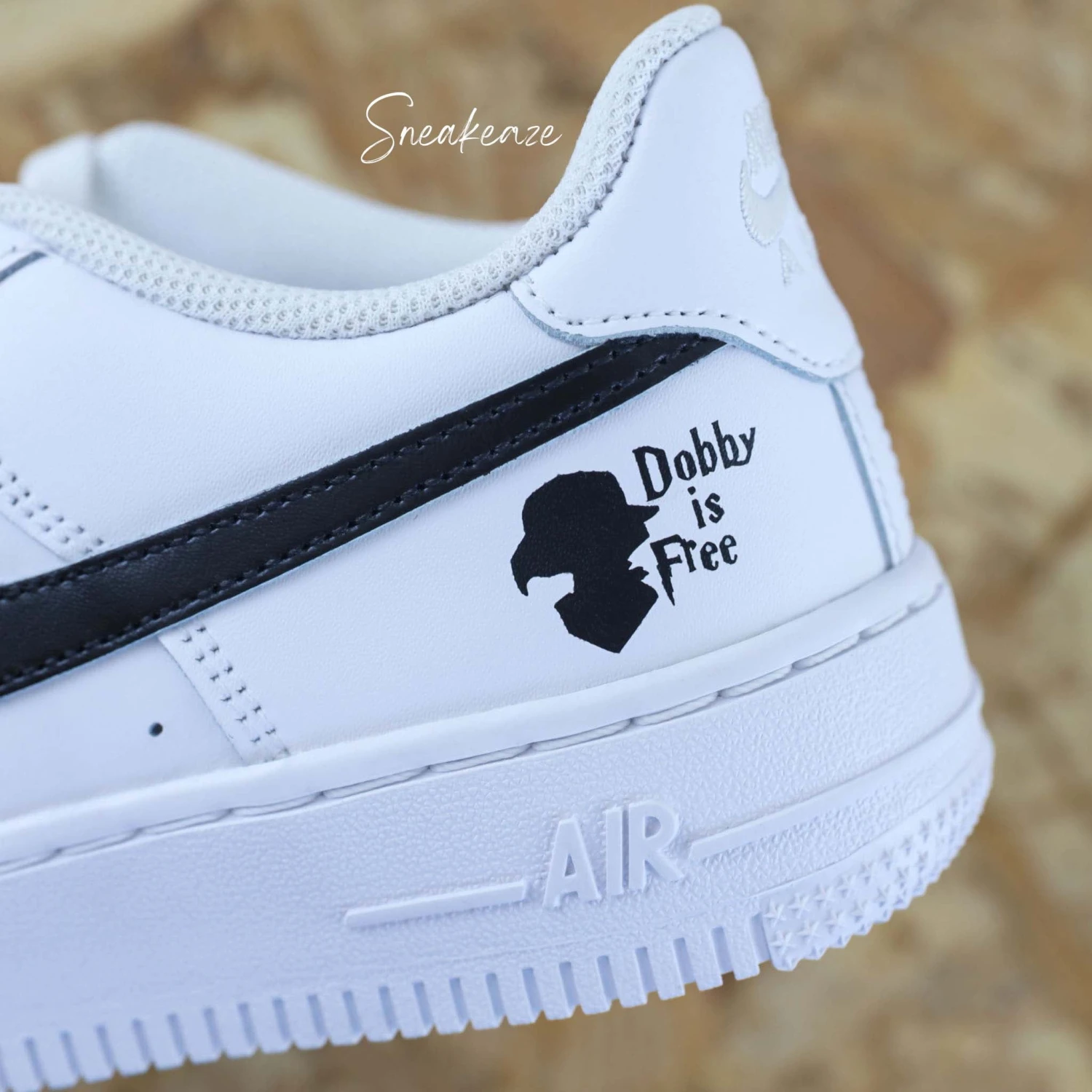 Basket Nike Air force 1 custom motifs Dobby d’Harry potter sur côtés extérieurs. Je souhaite ajouter un prénom à mon custom