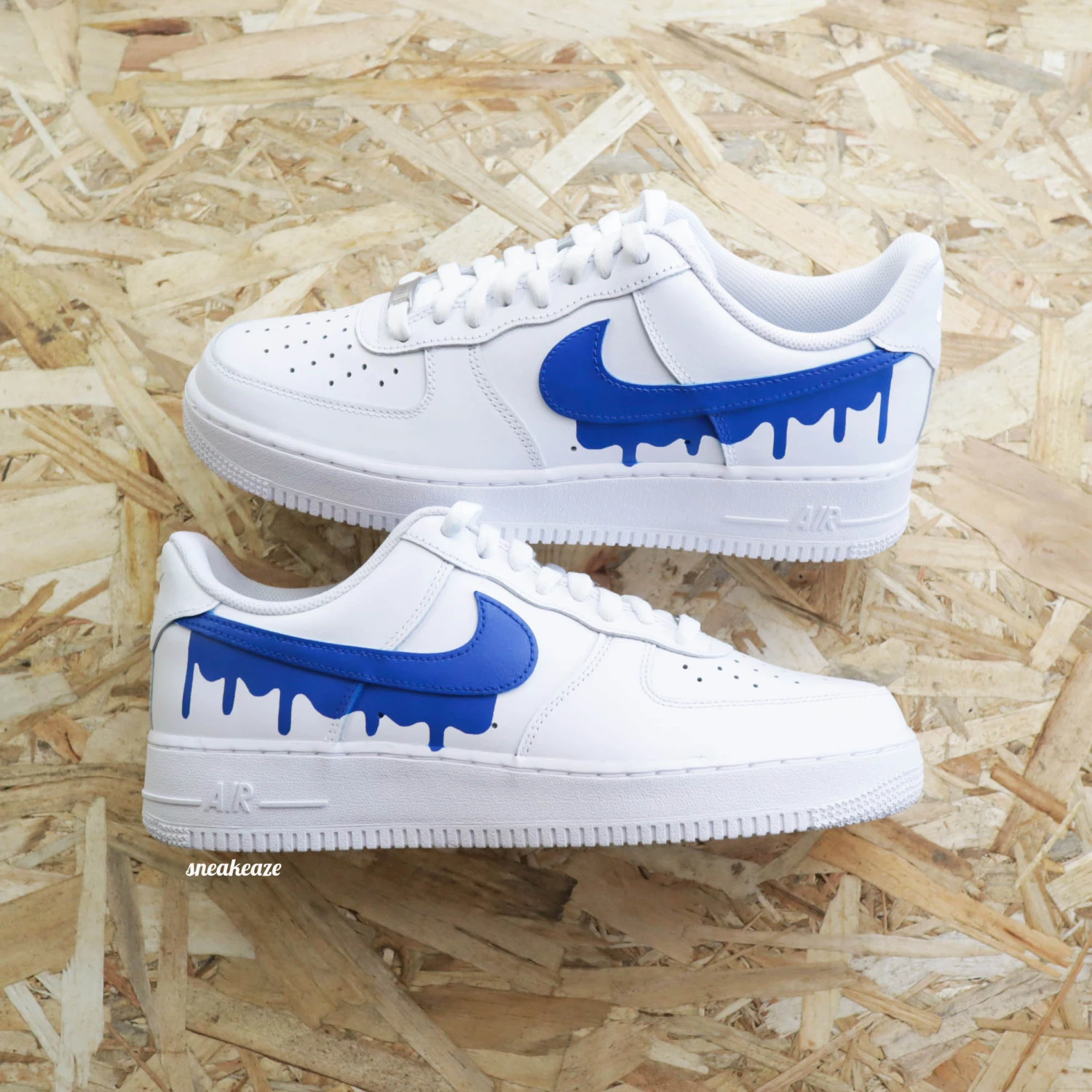 Baskets Nike Air force 1 custom modèle drip effet coulant couleur bleu.