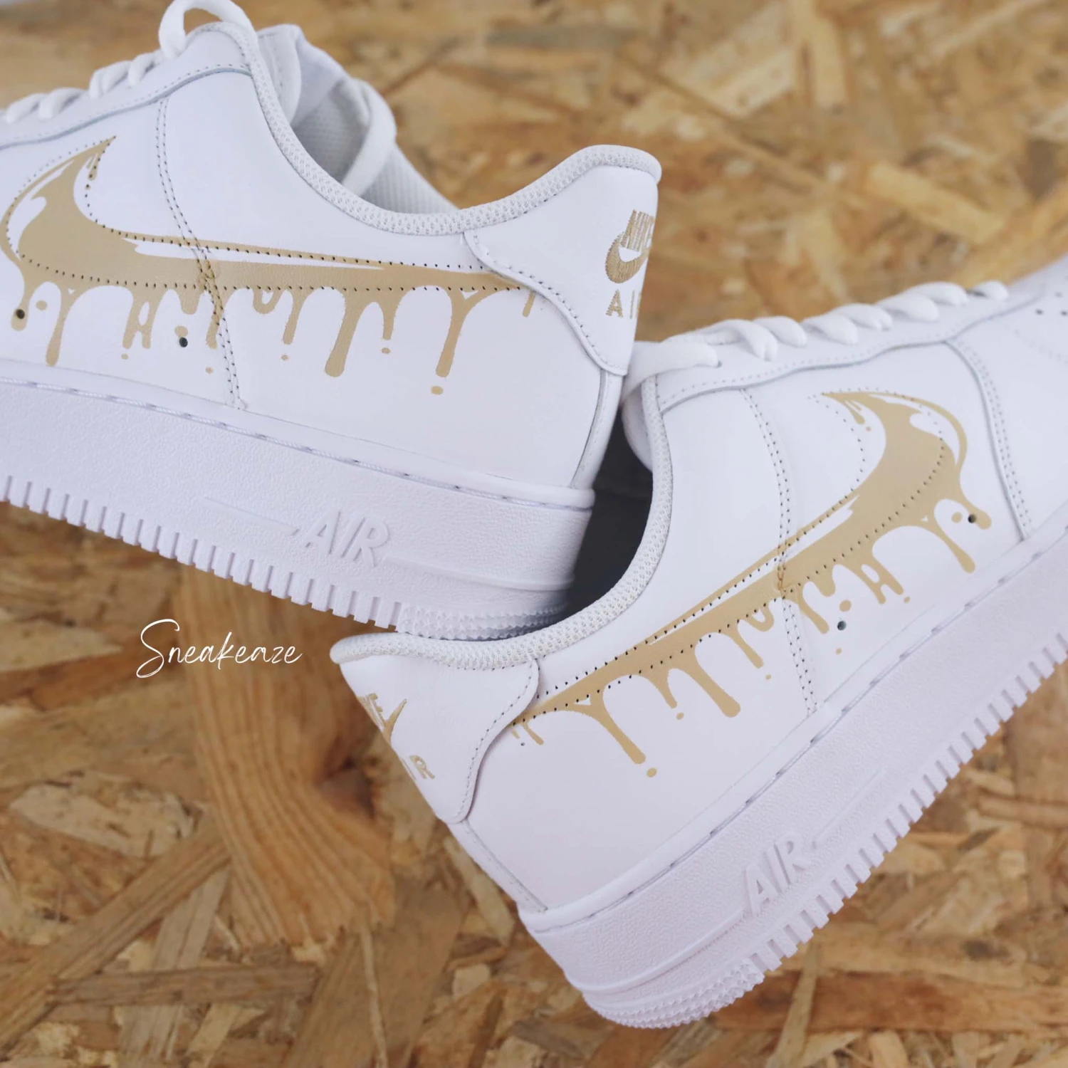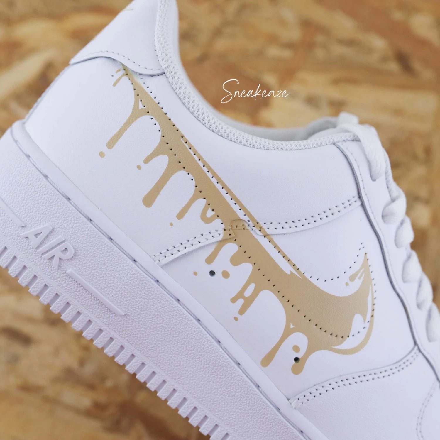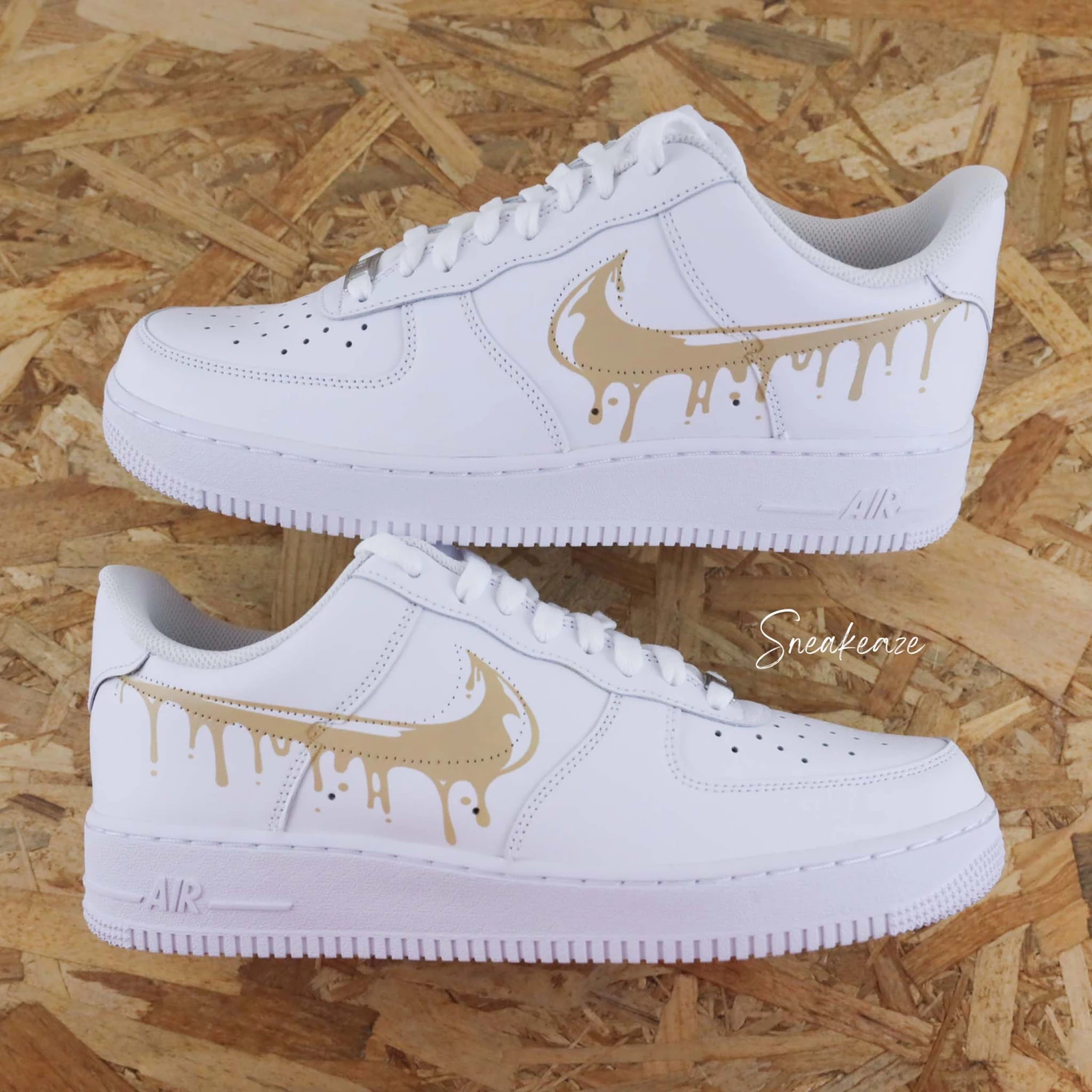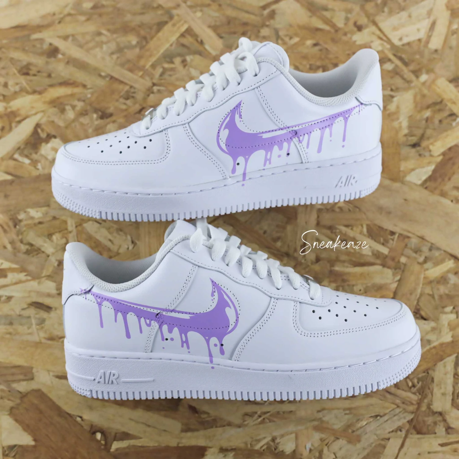 Baskets Nike Air force 1 custom modèle drip effet coulant. Motifs sur côtés extérieurs.