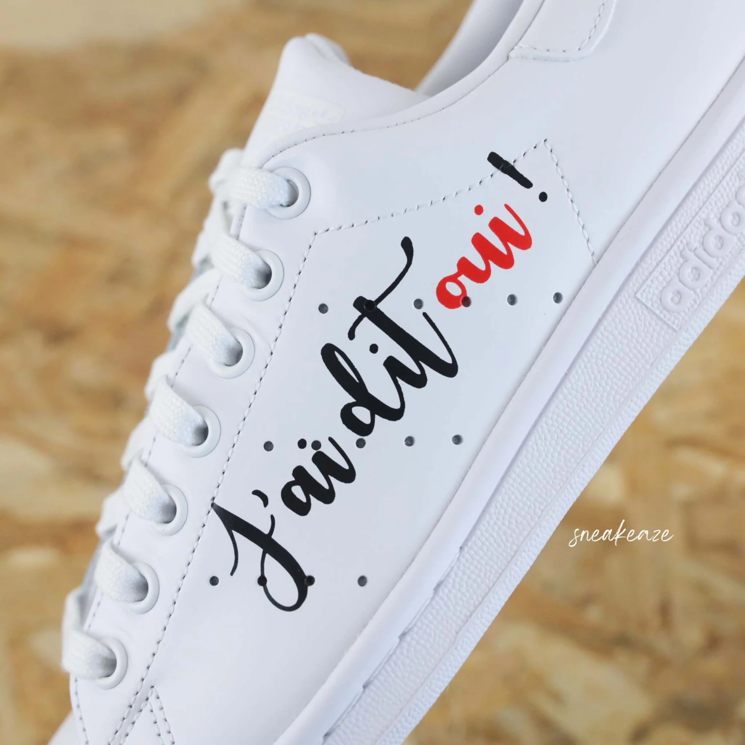 Vous êtes à la recherche du petit plus qui vous rendra unique pour le plus beau jour de votre vie ? Démarquez-vous avec une belle paire de sneakers personnalisées ! Ne soyez personne d’autre que vous-même et portez des chaussures qui vous ressemblent !
