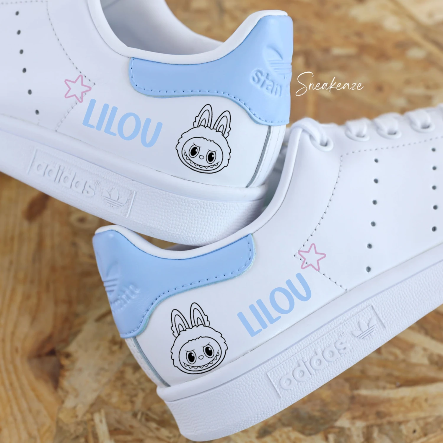 Baskets Adidas Stan Smith custom dessin Labubu et et talon peint à la main