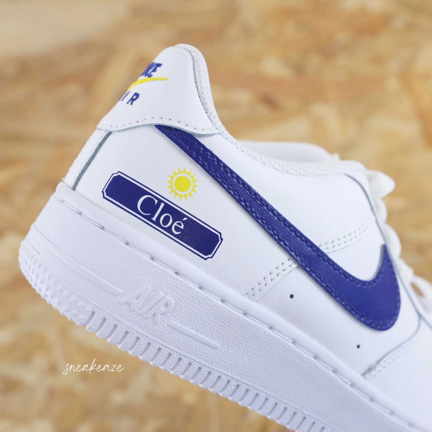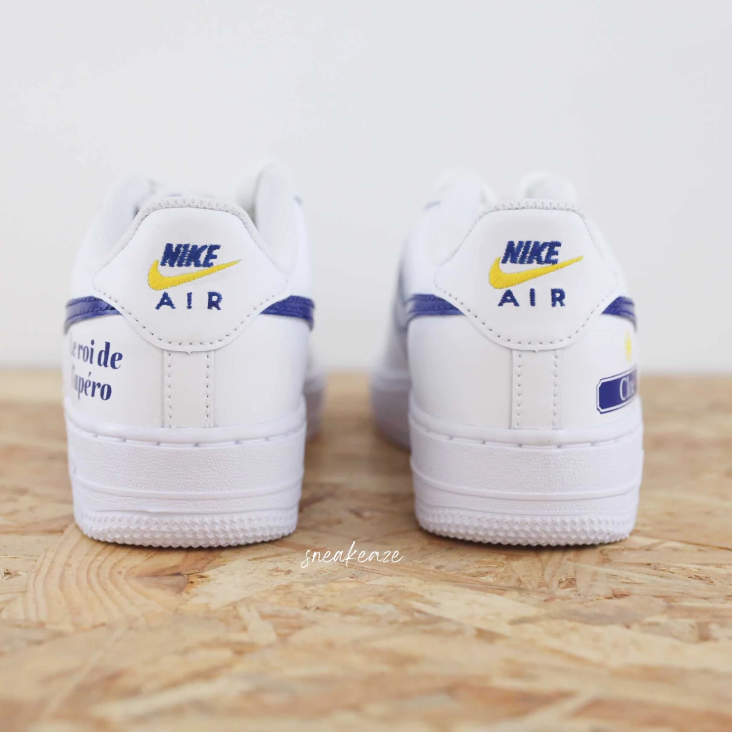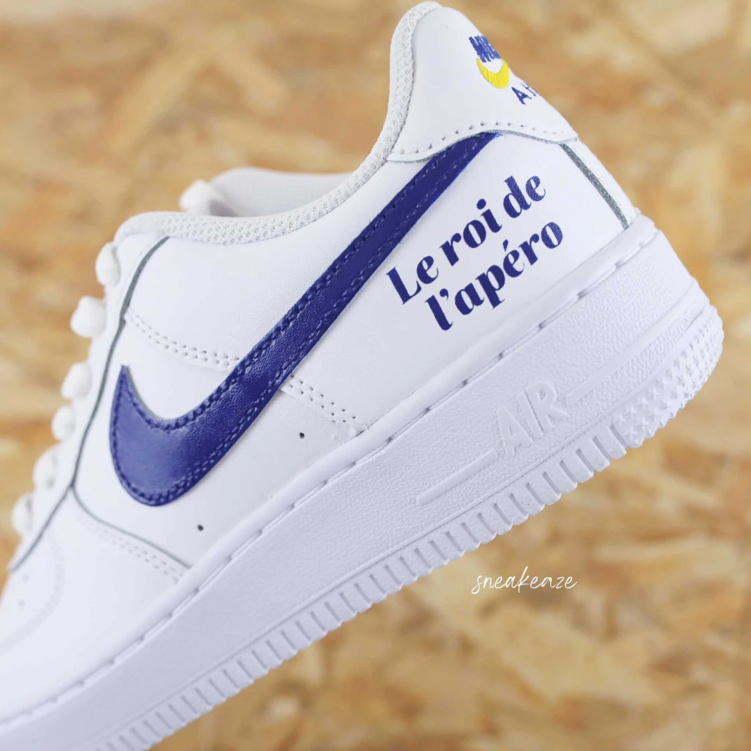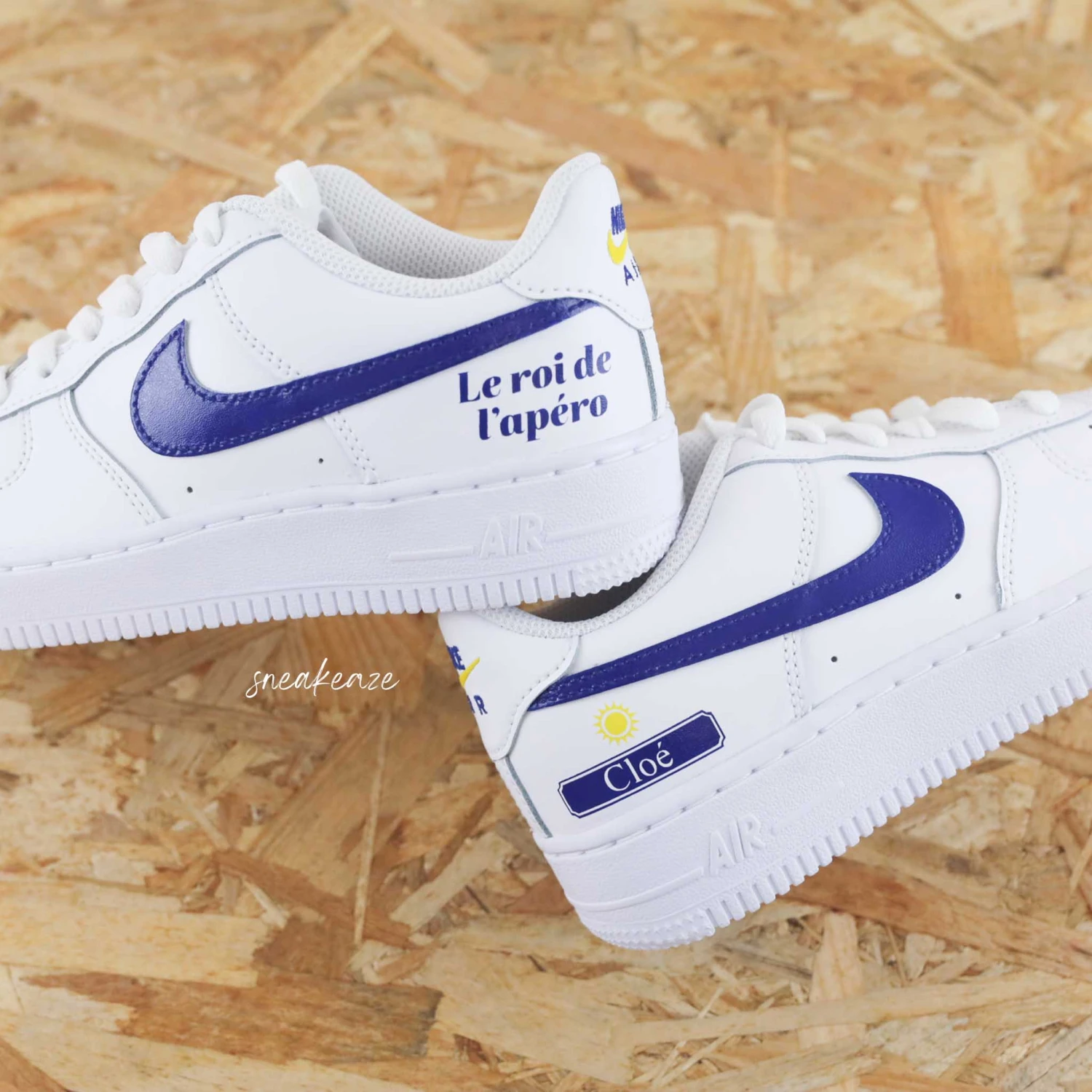 Baskets Nike Air Force 1 custom pastis – Prénom et phrase “le roi de l’apéro”