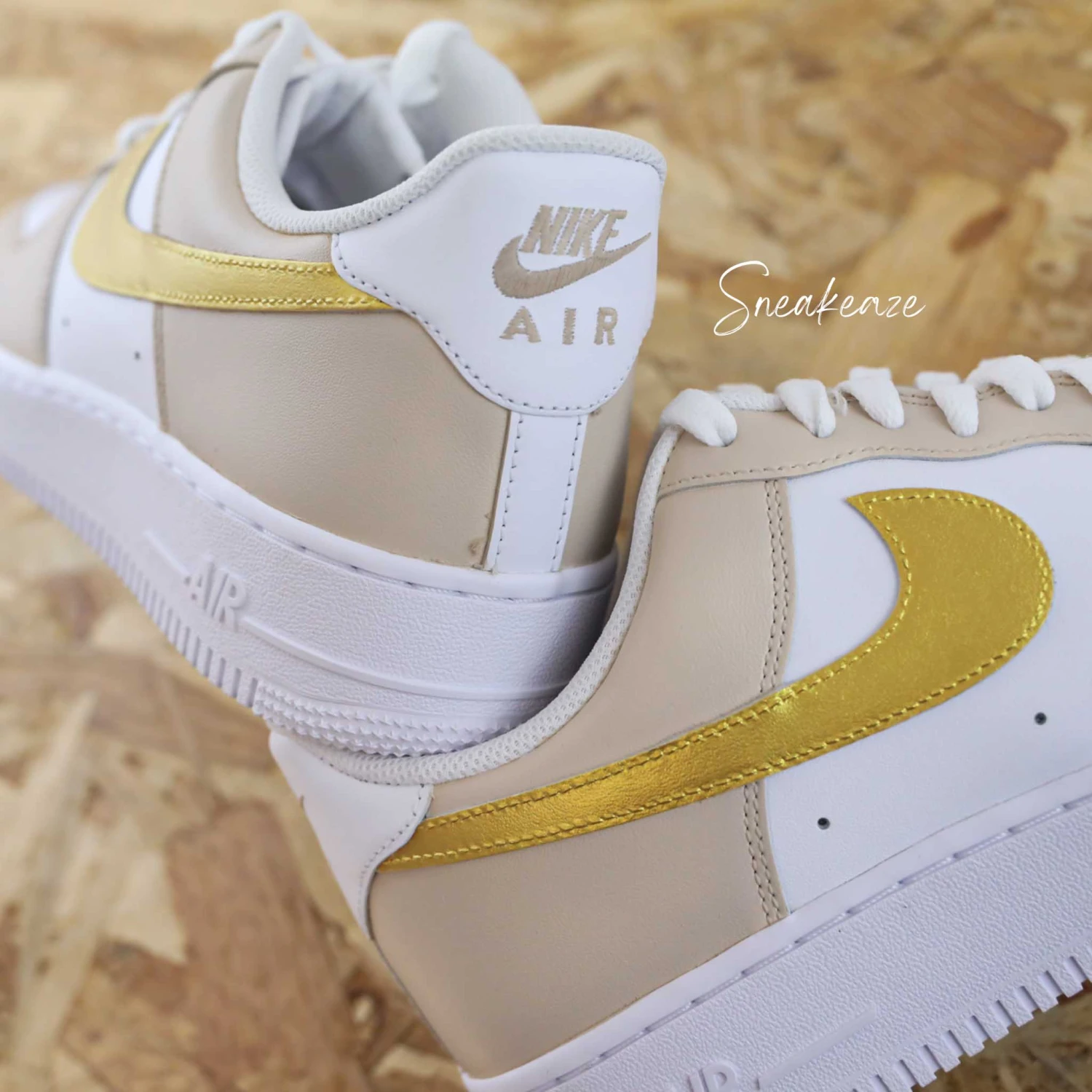 Baskets Nike Air Force 1 custom doré et couleur beige pastel