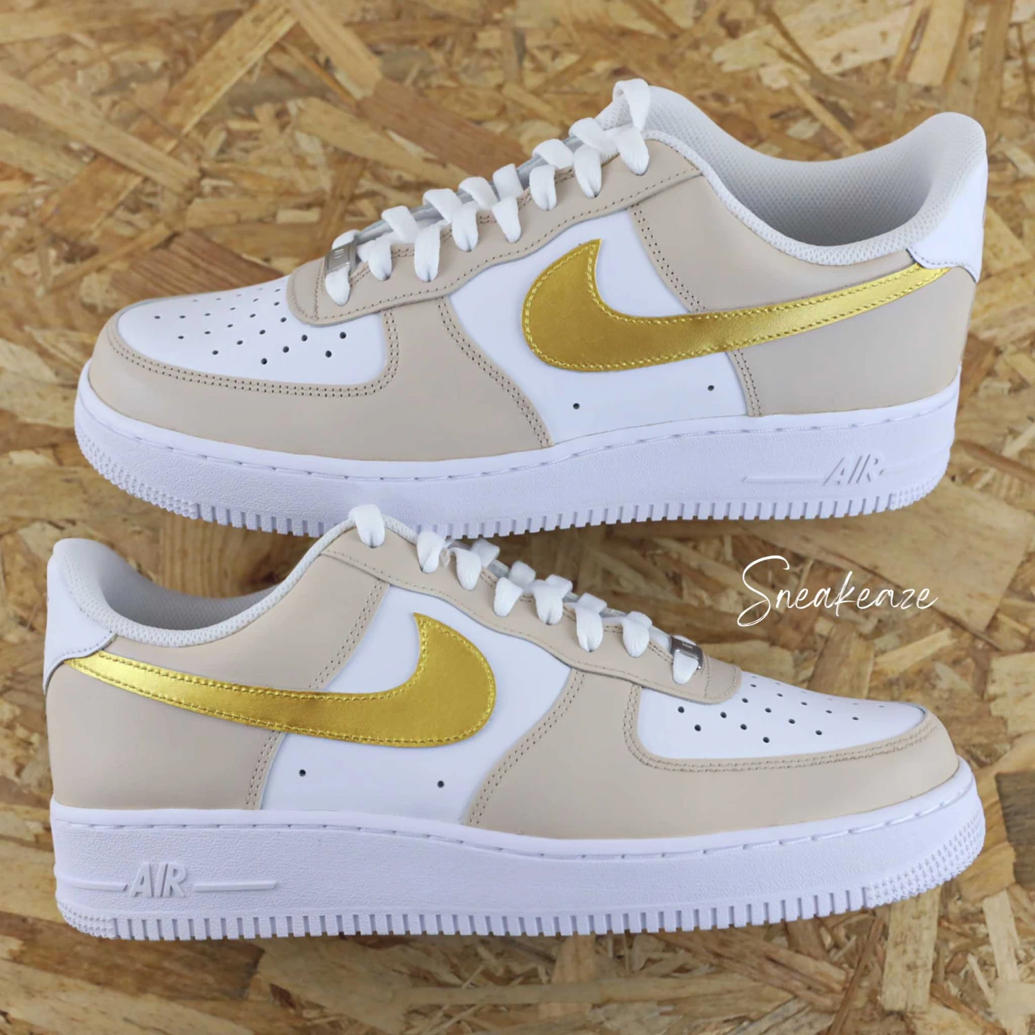 Baskets Nike Air Force 1 custom swoosh doré et couleur pastel
