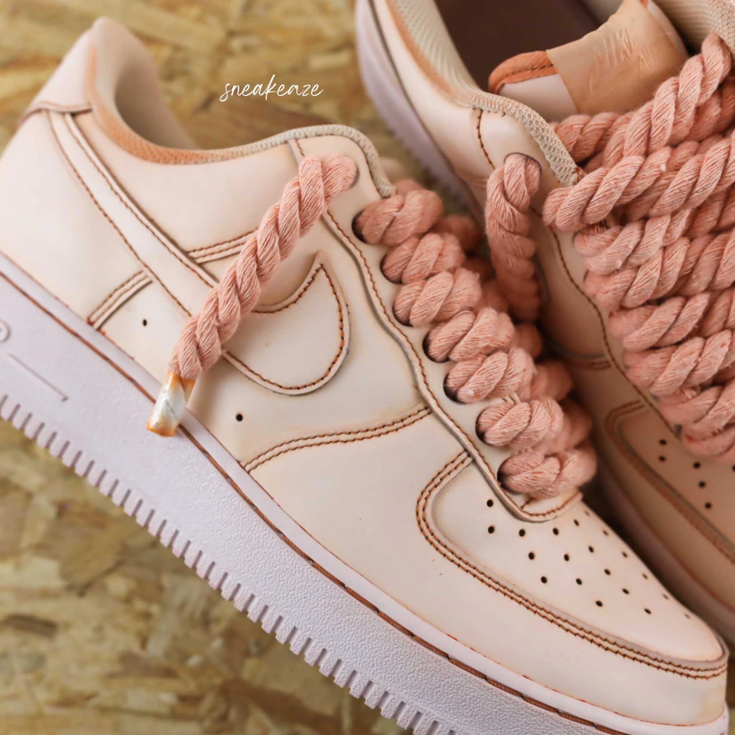 Découvre notre modèle de Nike Air Force 1 custom orange Rope Laces. Cette paire d’af1 à gros lacets est entièrement teinte à la main ce qui rend chaque exemplaire unique. De ce fait la couleur peut légèrement différer d’une paire à l’autre.