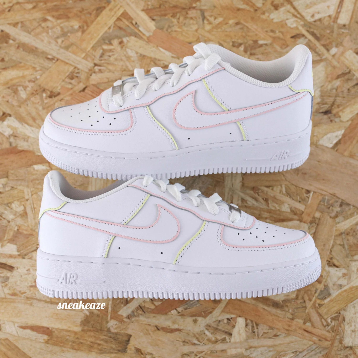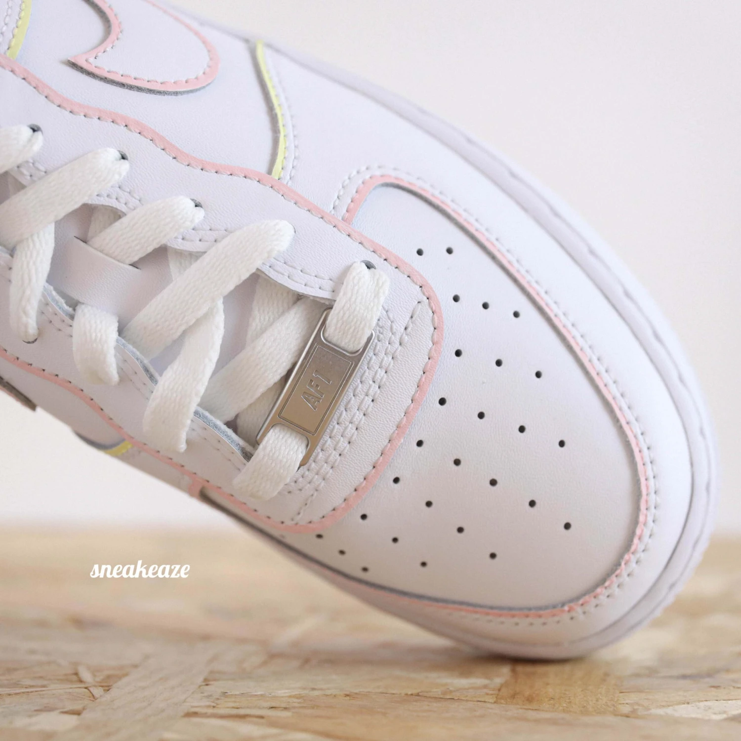 Baskets Nike Air force 1 custom modèle outline – couleurs pastels.