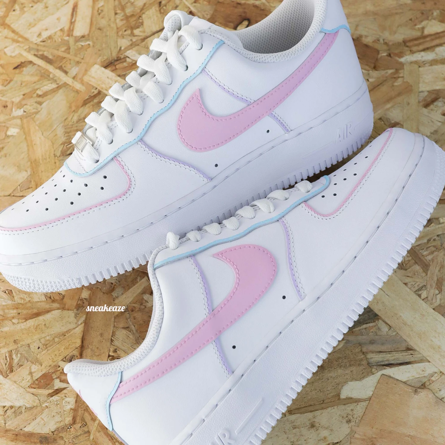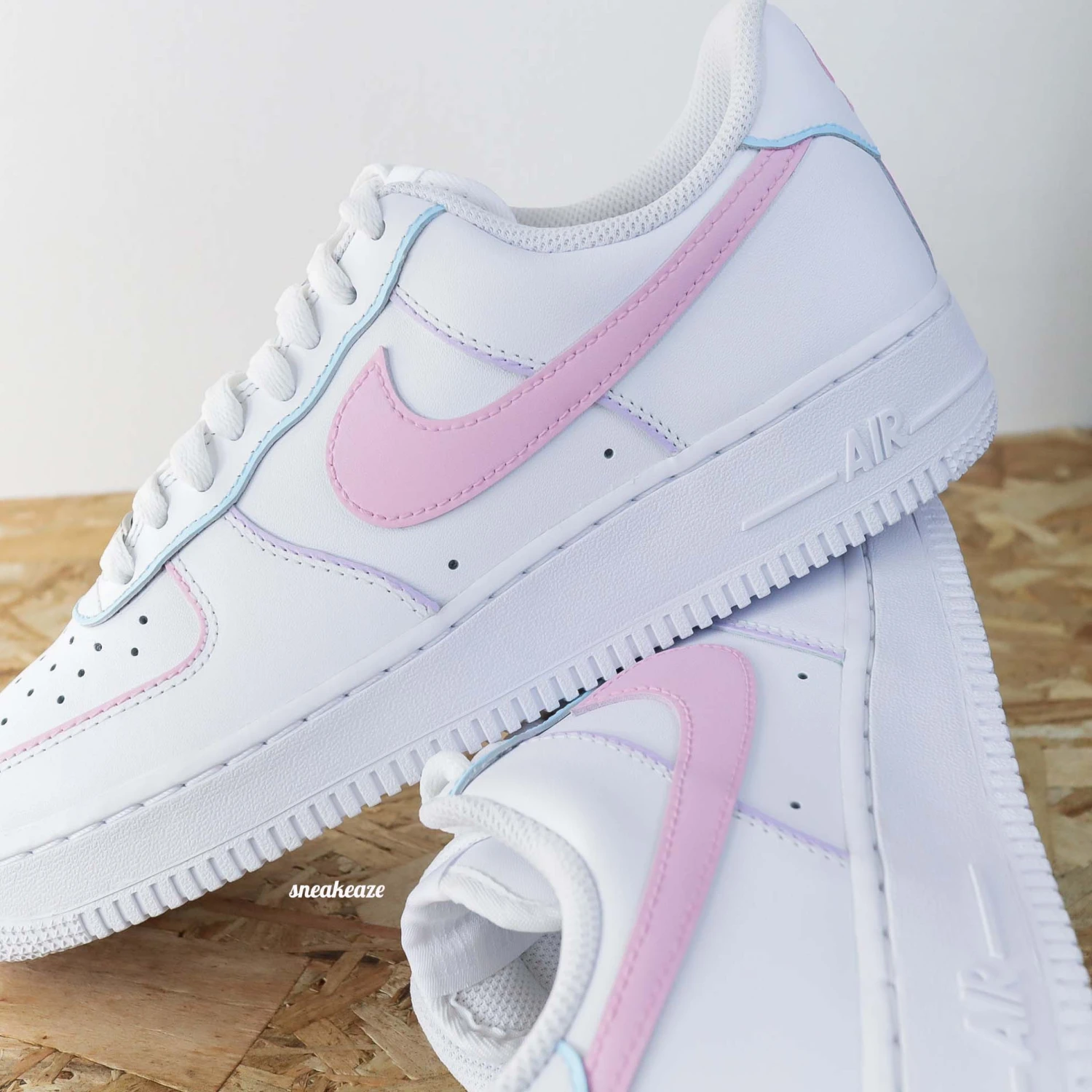 Baskets Nike Air force 1 custom modèle outline – couleurs pastels.