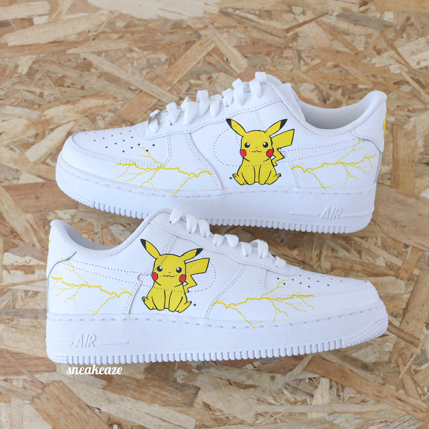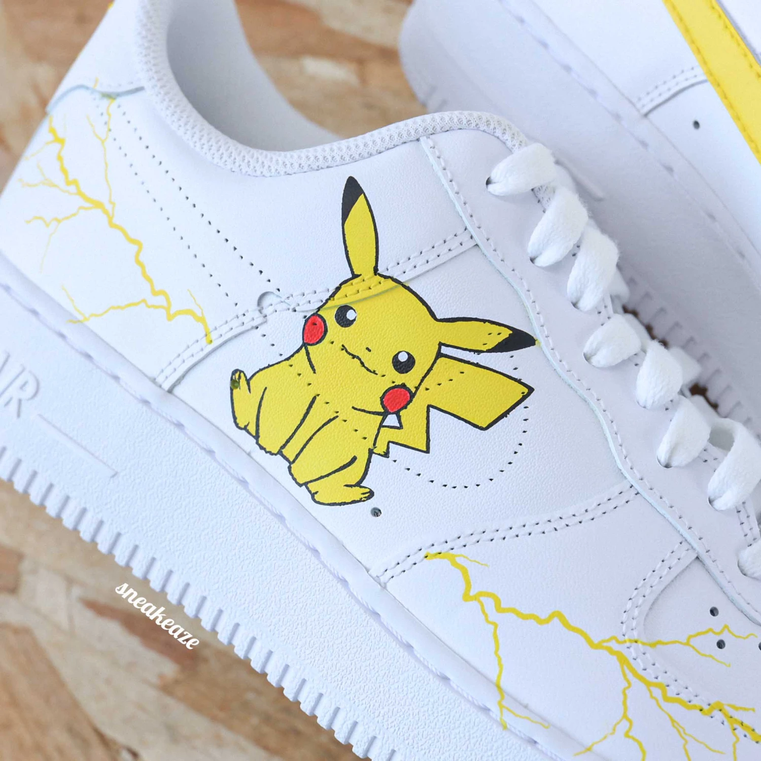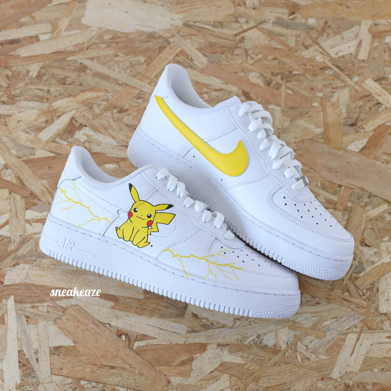 Baskets Nike Air force 1 Pokémon Pikachu peint à la main signes Nike intérieurs jaune. Attrapez les tous !