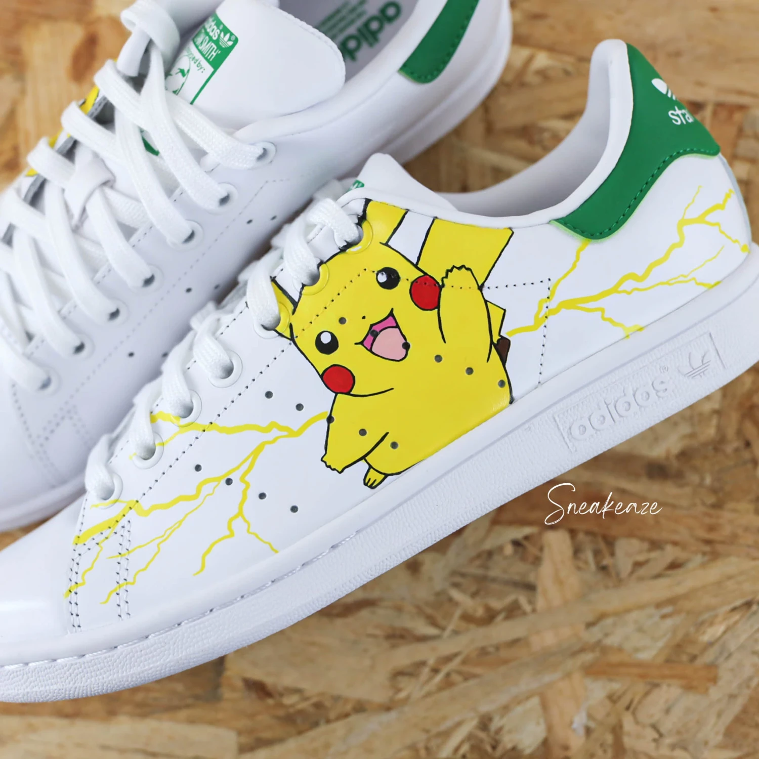 Baskets Adidas Stan smith Pokémon Pikachu peint à la main. Attrapez les tous !