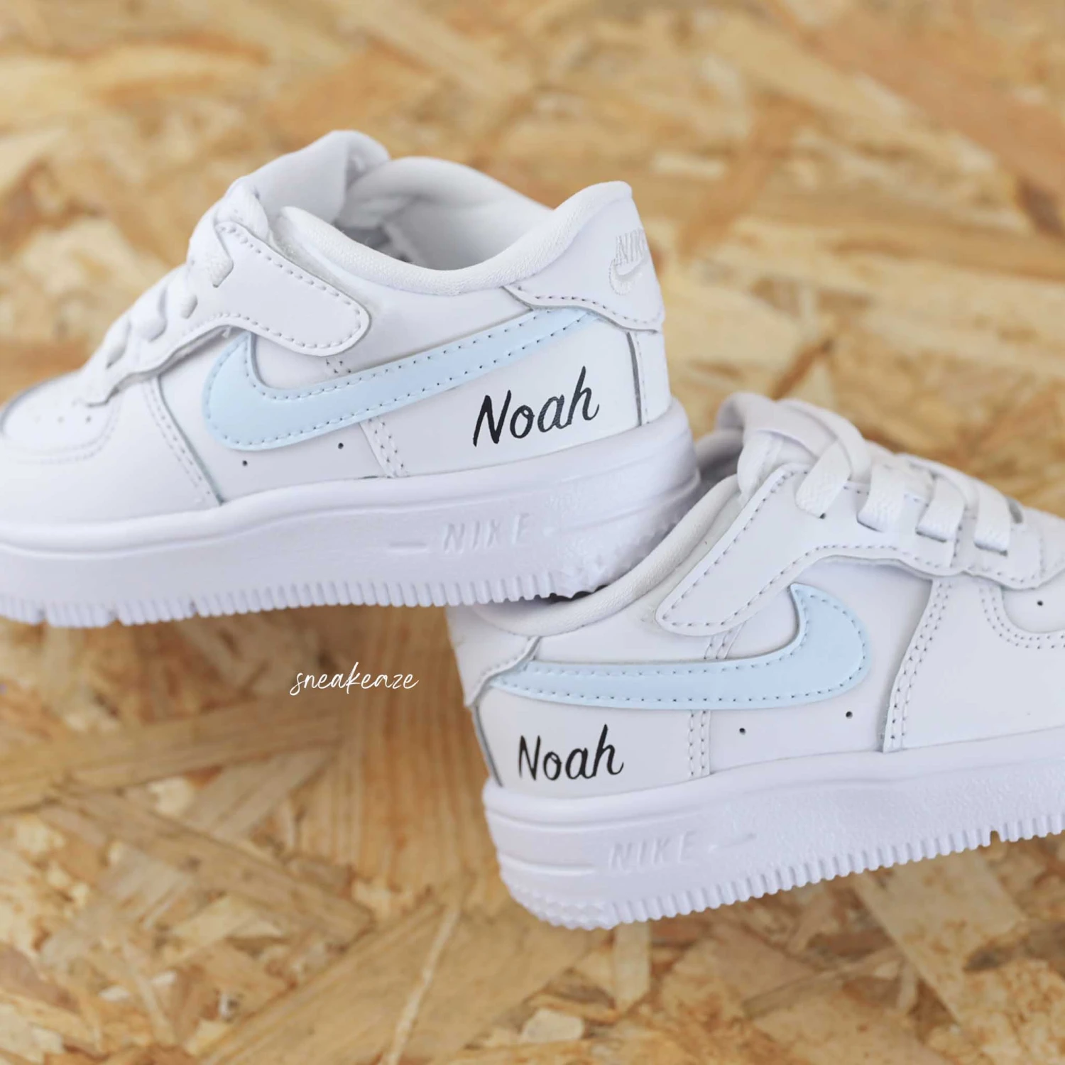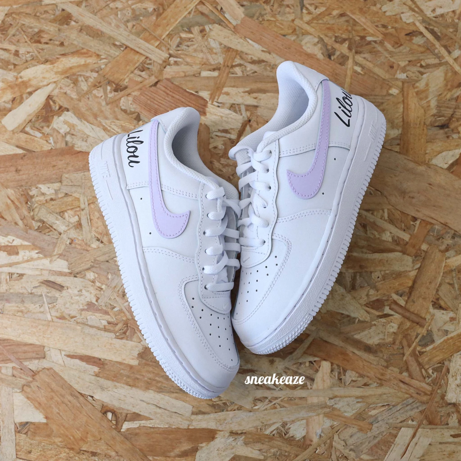 Baskets Nike Air force 1 custom modèle swoosh pastel et prénom.