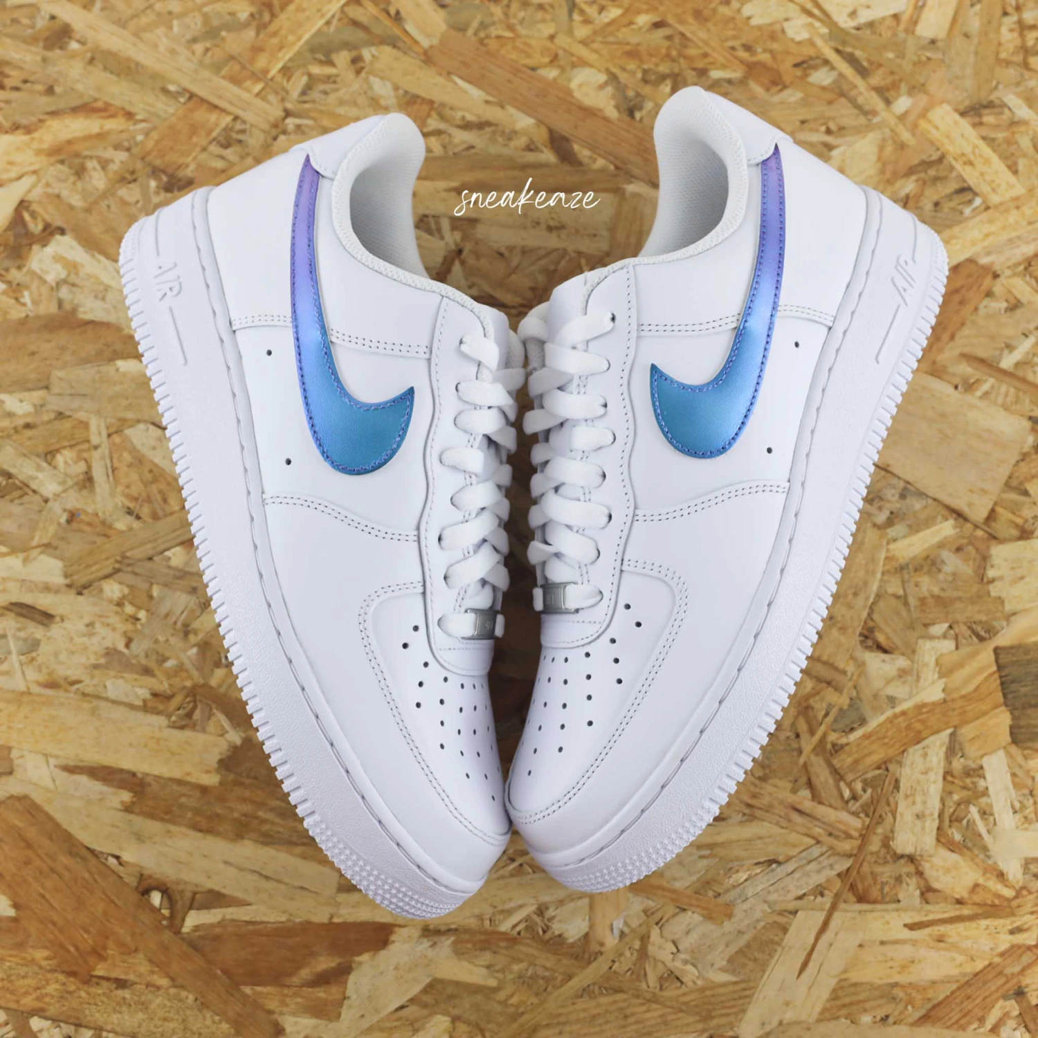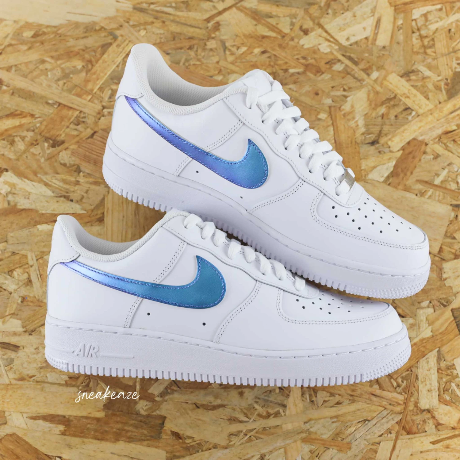 Baskets Nike Air Force 1 custom signes Nike intérieurs et extérieurs holographic. la couleur varie selon la lumière.