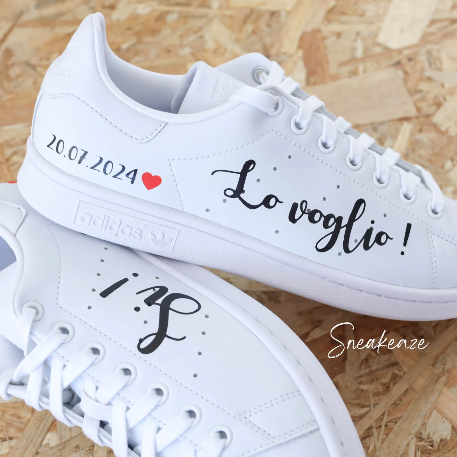 Baskets Adidas Stan smith custom – modèle mariage “Oui je le veux” en italien