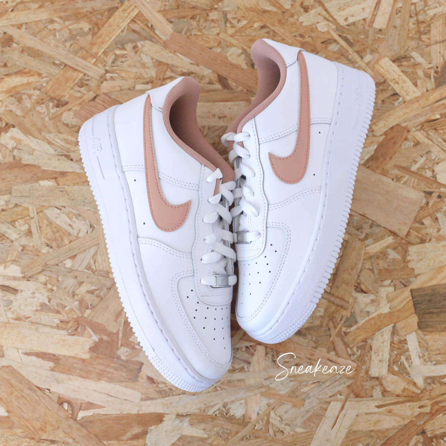 Baskets Nike Air Force 1 custom swoosh et toile assortis couleur terracotta. Je souhaite ajouter un prénom à mon custom