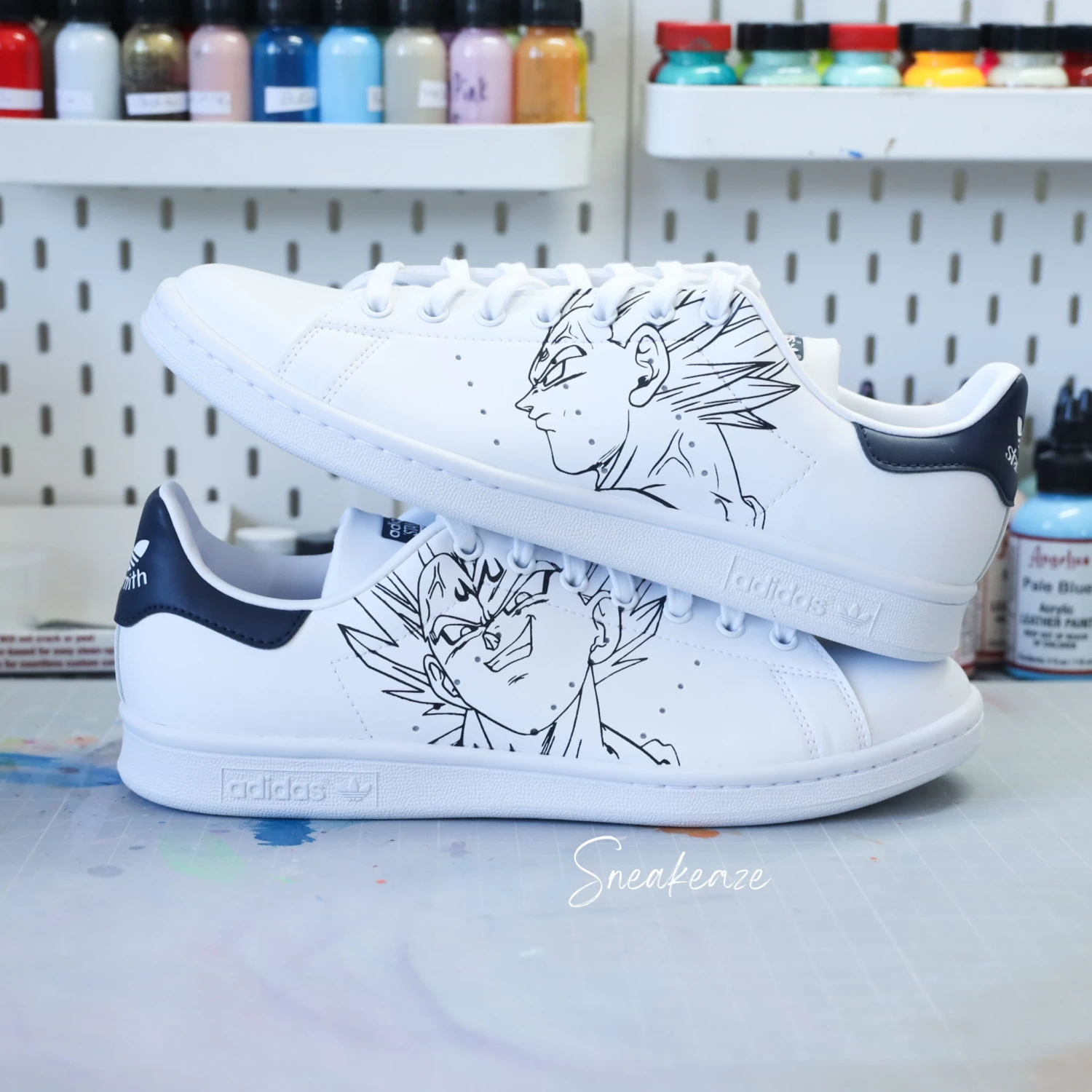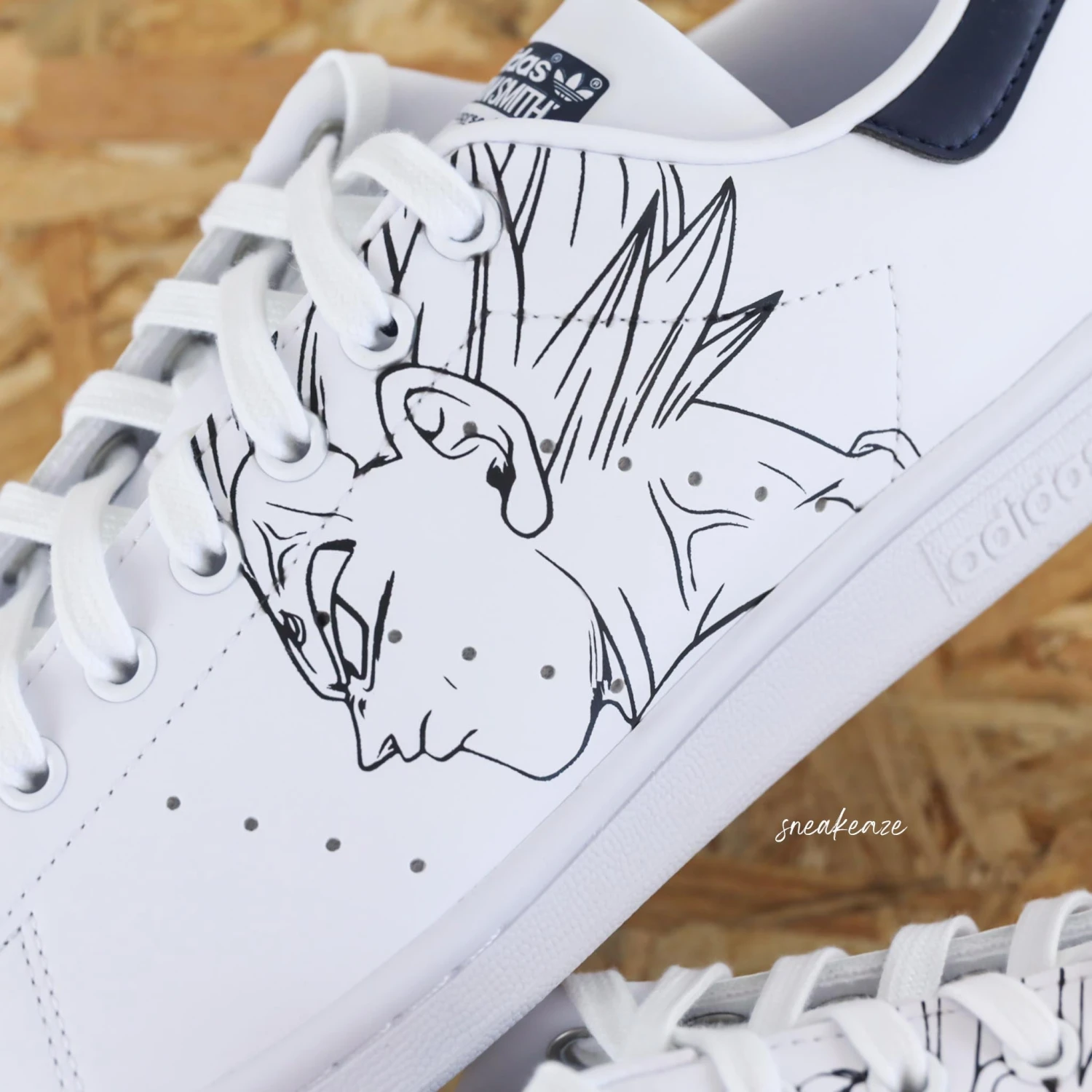 Baskets Adidas Stan Smith custom motifs Dragon Ball Z Vegeta sur côtés extérieurs. Je souhaite ajouter un prénom à mon custom